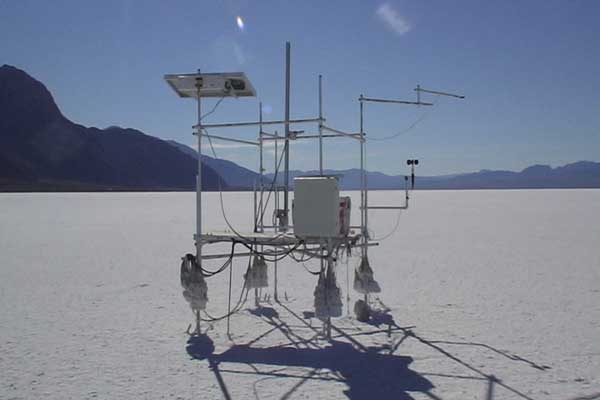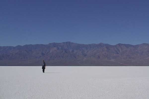 I met some geology students who were mapping the surface layers of Death Valley when I arrived at Badwater. I followed them out to a small metallic structure made of tubes and rods, perhaps a left over from a previous experiment. The salt was compact and crunched under my feet, leaving cakes on my shoes and pants. This is what Antartica must feel like, I thought.